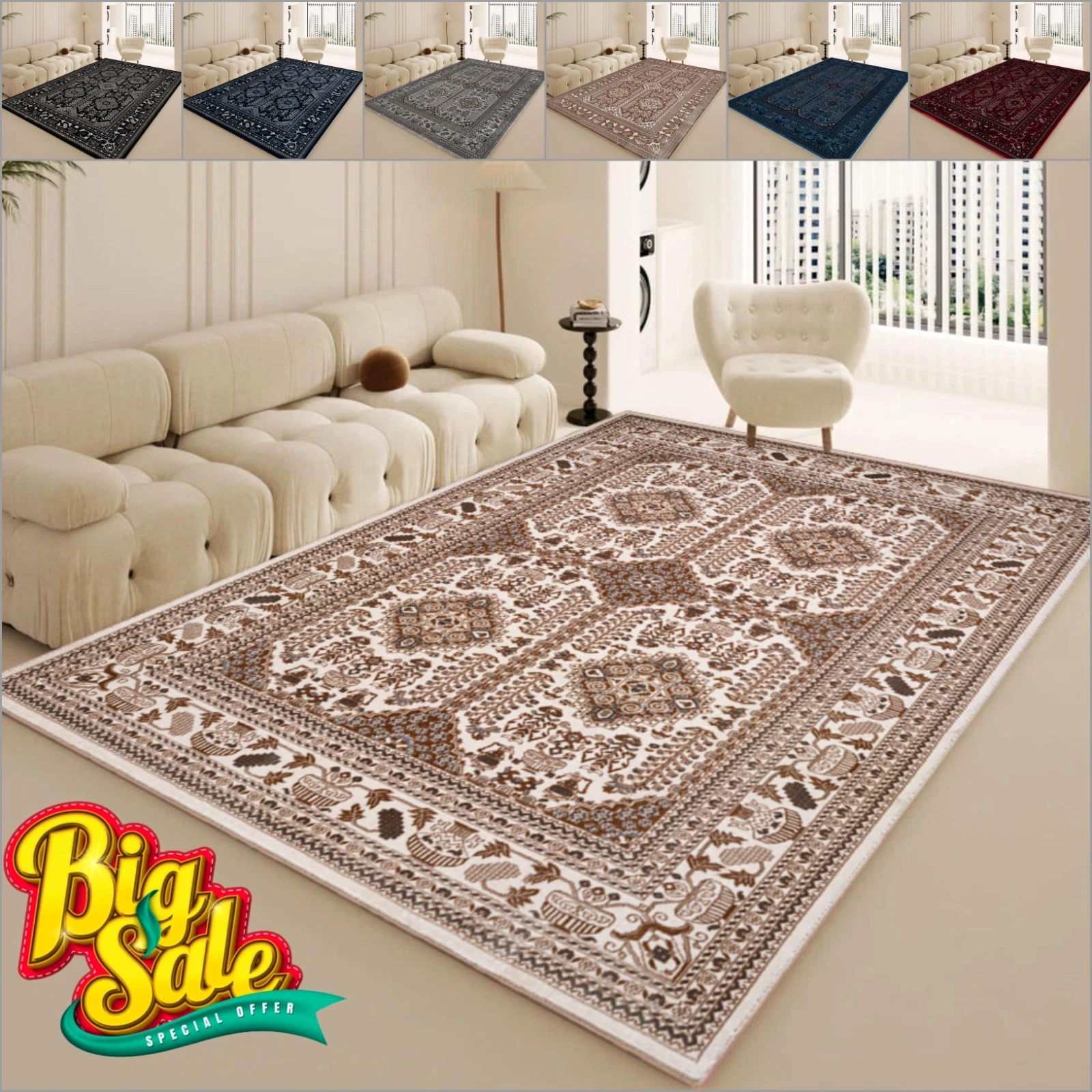 Extra Large Traditional Rug · Anti-Slip Runner · Bedroom & Living Room Carpet